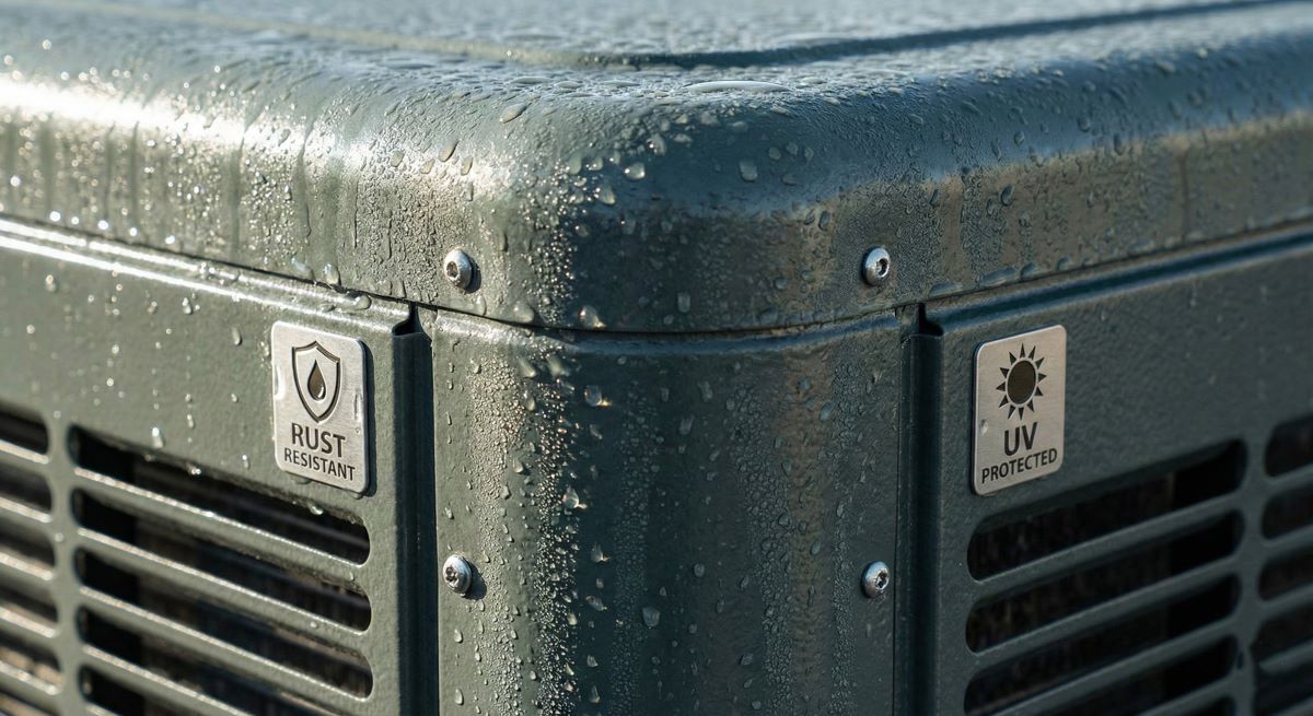 - جنس بدنه: بهترین کولرها از ورق گالوانیزه با ضخامت مناسب و پوشش رنگ پودری الکترواستاتیک ساخته میشوند. این پوشش، مقاومت کولر را در برابر زنگزدگی، خوردگی و اشعه UV خورشید به شدت افزایش میدهد.